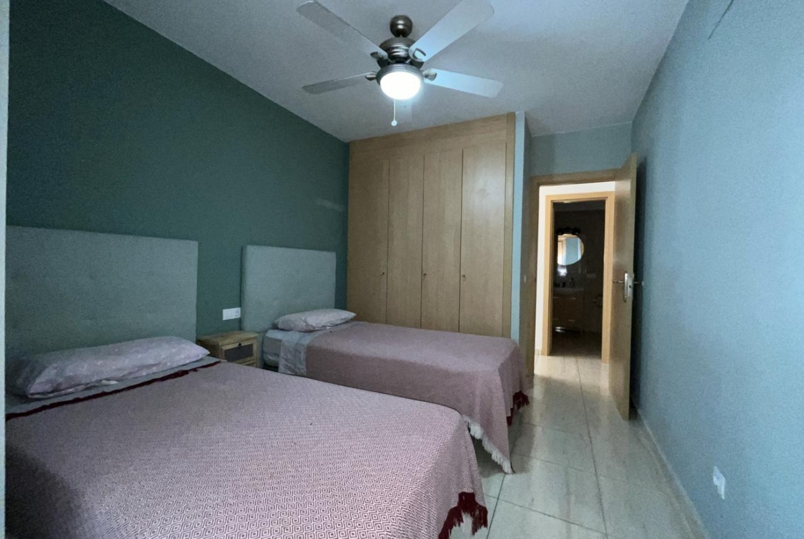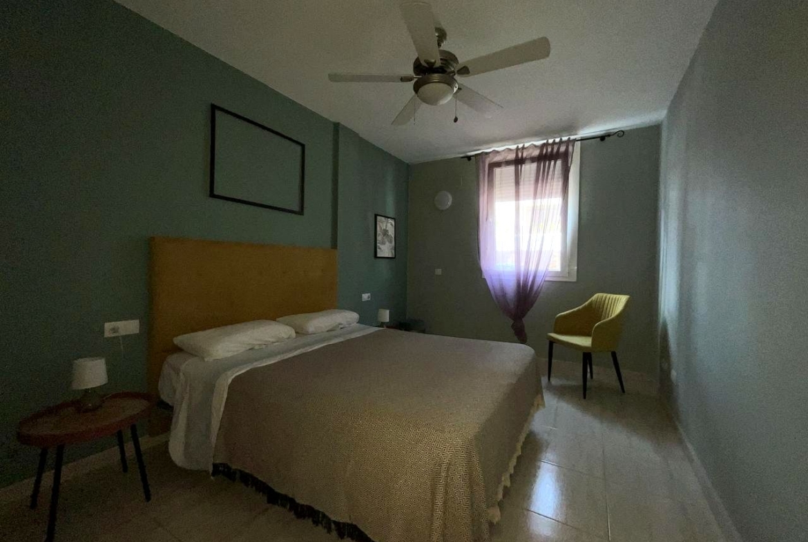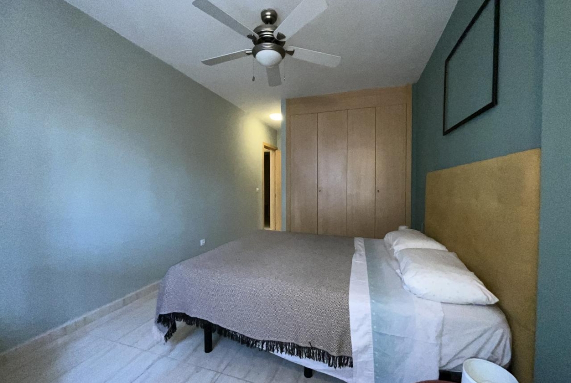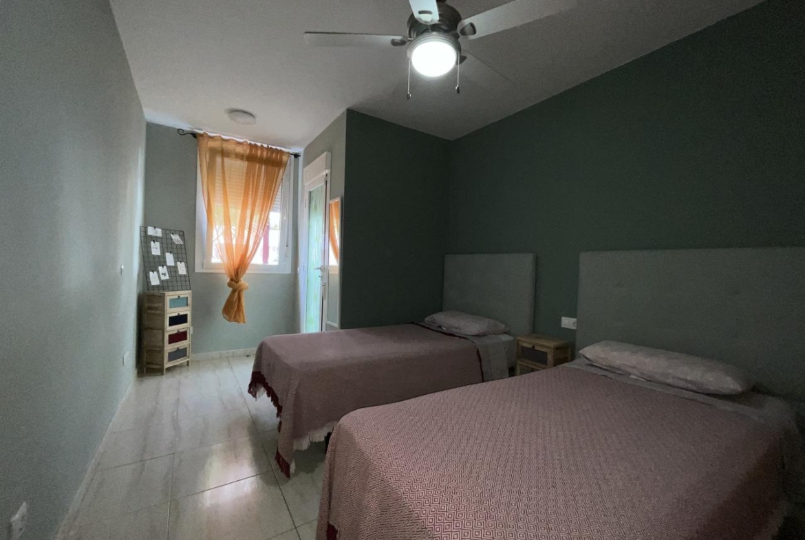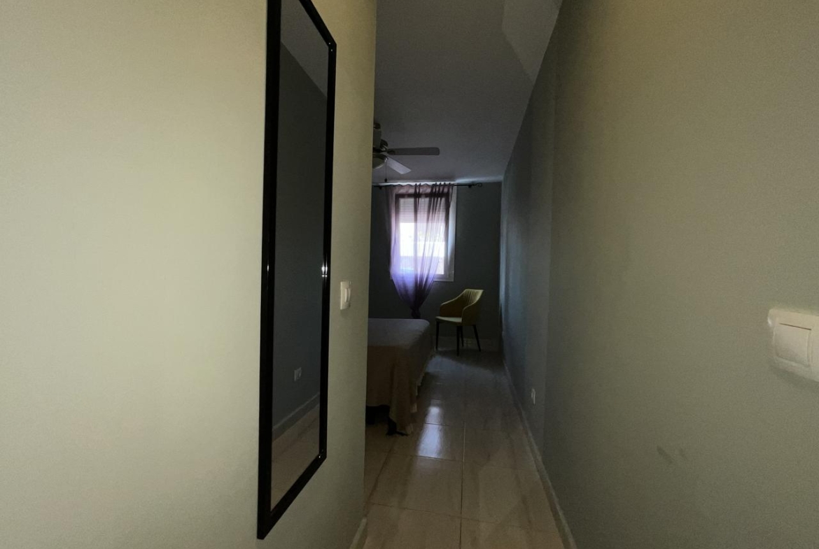 Diese außergewöhnliche Erdgeschosswohnung, die komplett renoviert wurde, bietet einen modernen und komfortablen Raum, der sofort bezugsfertig ist. Mit einer Wohnfläche von 110 m² und 140 m² bebauter Fläche verfügt sie über zwei Schlafzimmer, die mit Einbauschränken und Betten ausgestattet sind, sowie über zwei Bäder. Das geräumige Wohnzimmer geht harmonisch in die offene Küche über und bietet eine gemütliche und funktionelle Atmosphäre.
