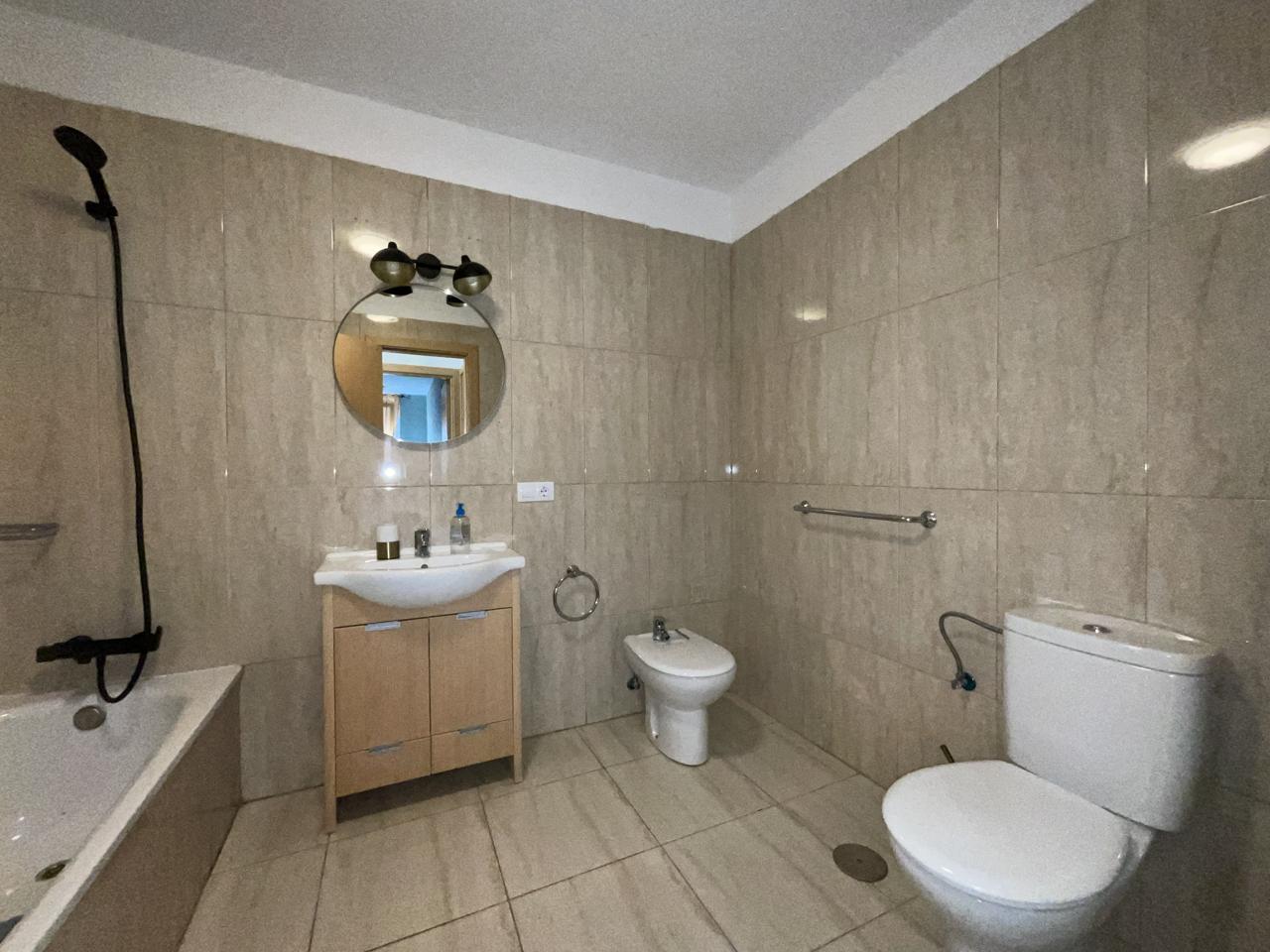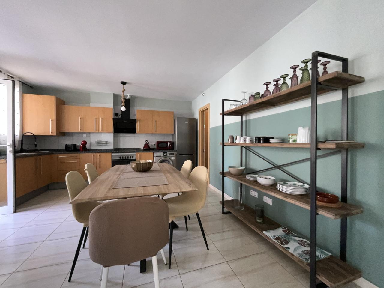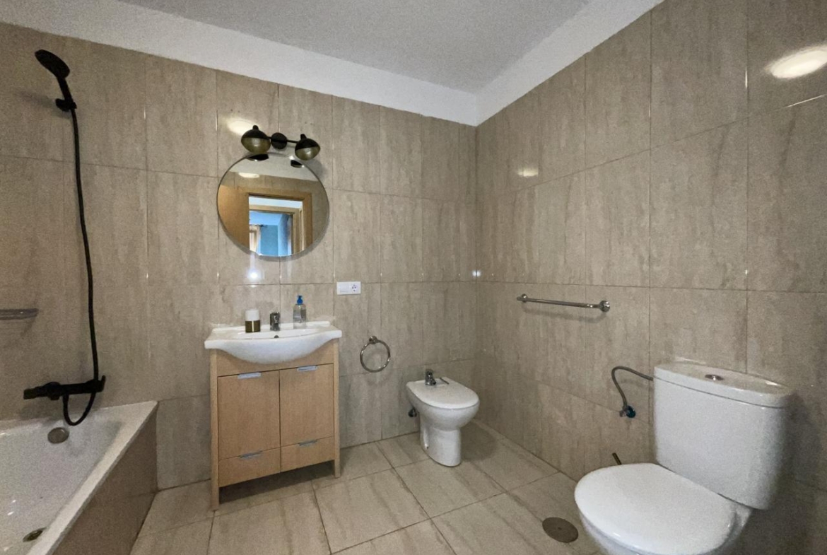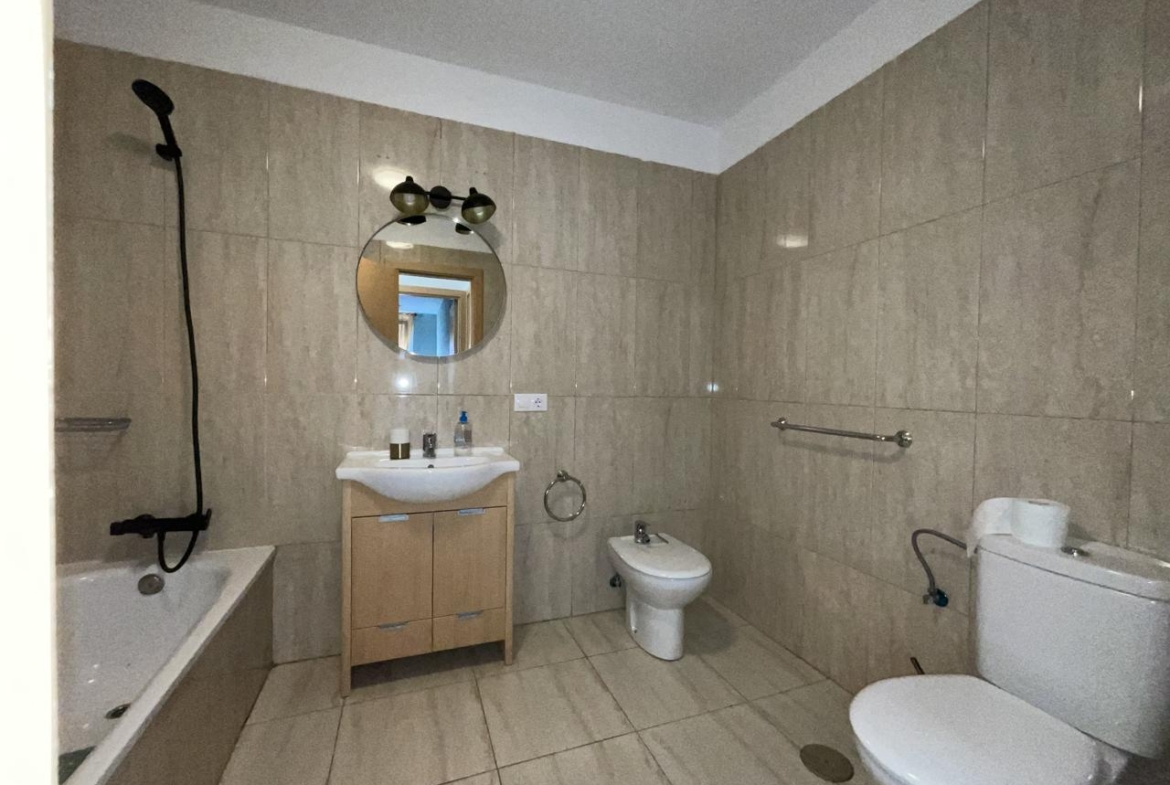 Diese außergewöhnliche Erdgeschosswohnung, die komplett renoviert wurde, bietet einen modernen und komfortablen Raum, der sofort bezugsfertig ist. Mit einer Wohnfläche von 110 m² und 140 m² bebauter Fläche verfügt sie über zwei Schlafzimmer, die mit Einbauschränken und Betten ausgestattet sind, sowie über zwei Bäder. Das geräumige Wohnzimmer geht harmonisch in die offene Küche über und bietet eine gemütliche und funktionelle Atmosphäre.