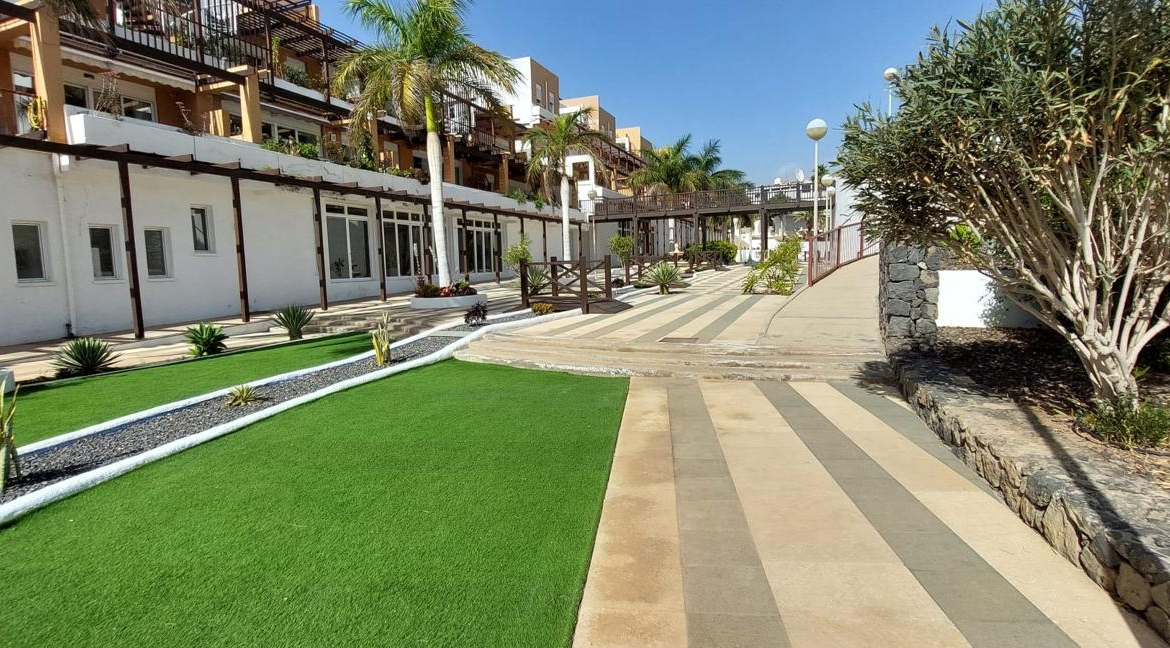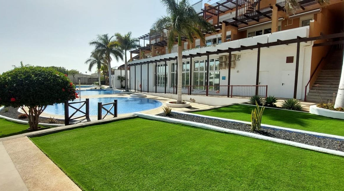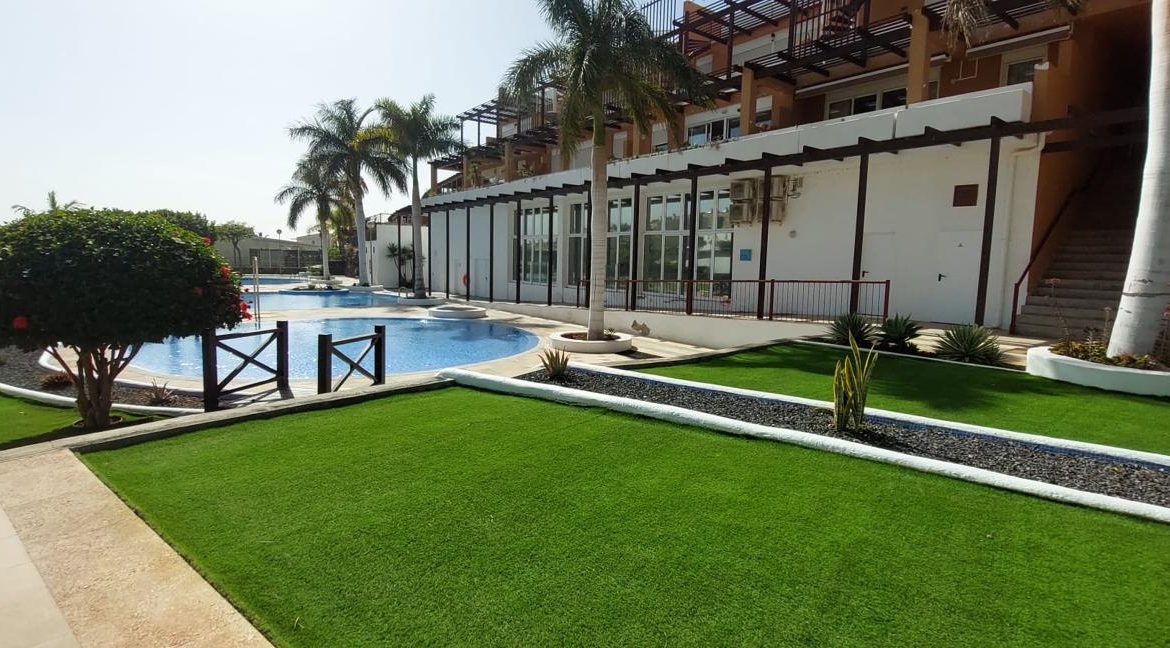 Die Immobilie befindet sich in einer privaten, bewachten Wohnanlage und ist Teil eines Komplexes mit weitläufigen Gärten und einem Gemeinschaftspool, der eine exklusive und ruhige Umgebung bietet. Seine hervorragende Lage, nur wenige Meter von allen lokalen Annehmlichkeiten und der Promenade von Golf del Sur, garantiert Komfort und eine hohe Lebensqualität.