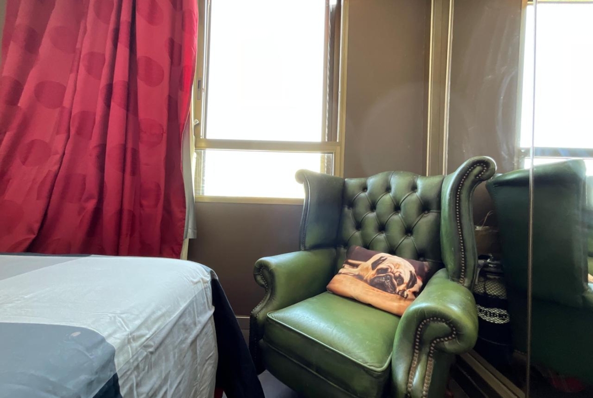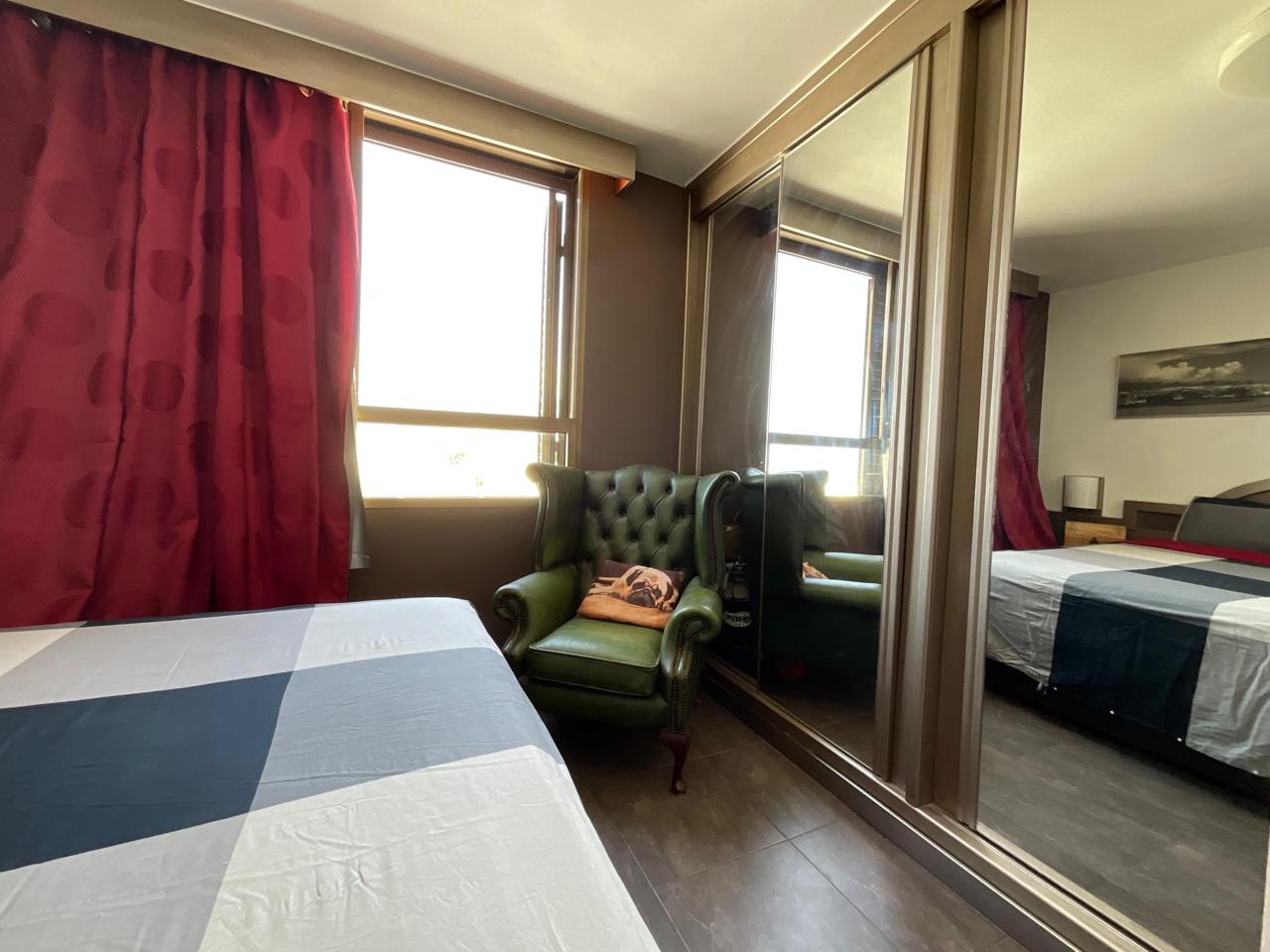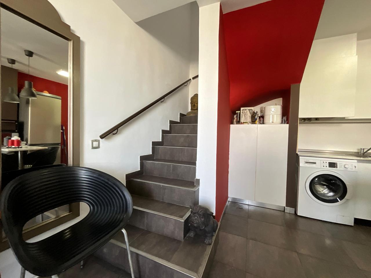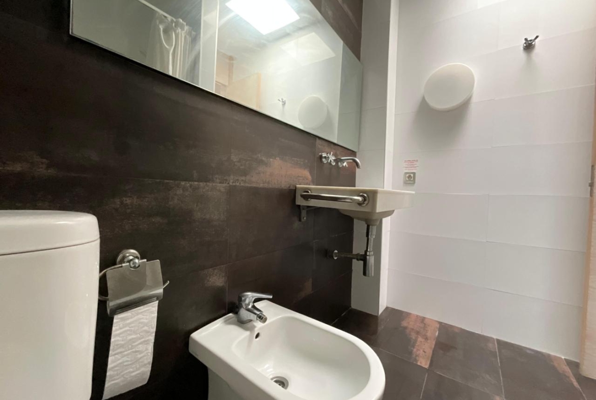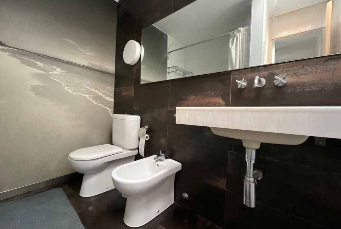 A través de una escalera interior se accede a la planta superior, donde se ubica el dormitorio principal. Se trata de una estancia amplia, luminosa y bien ventilada, que cuenta con armario empotrado con puertas de espejo, lo que aporta amplitud visual y funcionalidad. En esta misma planta se encuentra el baño completo, equipado con bañera, sanitarios en tonos blancos y revestimientos cerámicos decorativos que aportan un toque cuidado al conjunto.