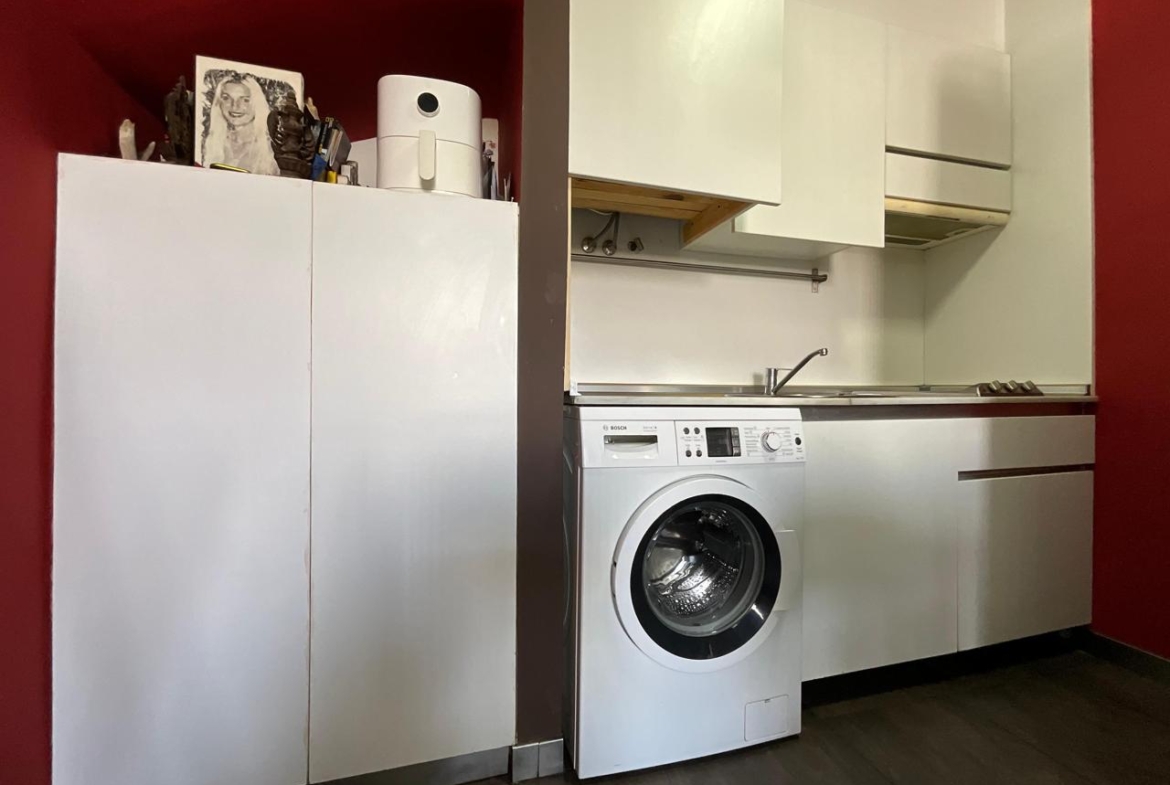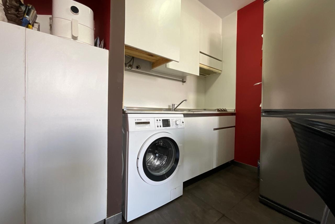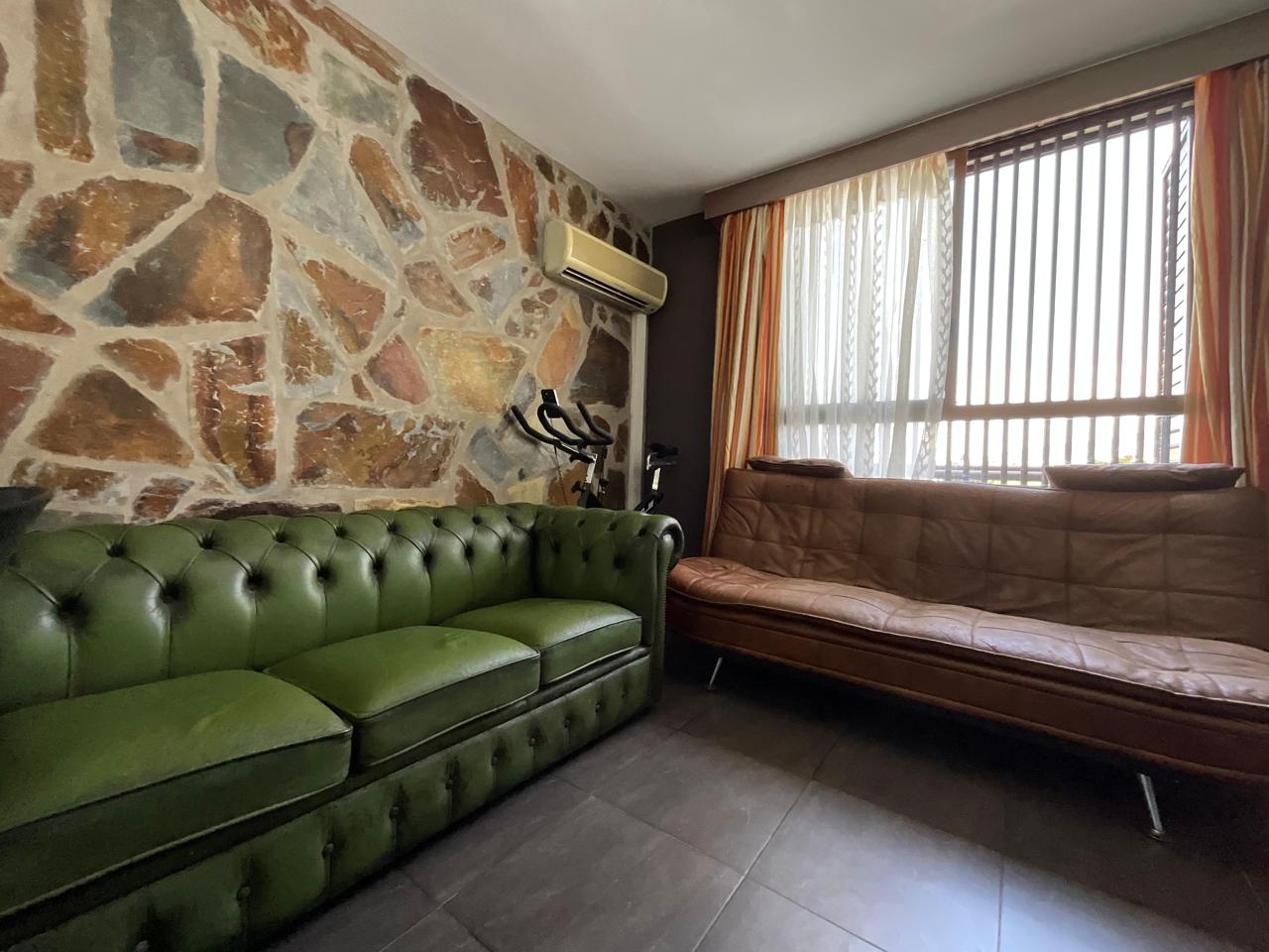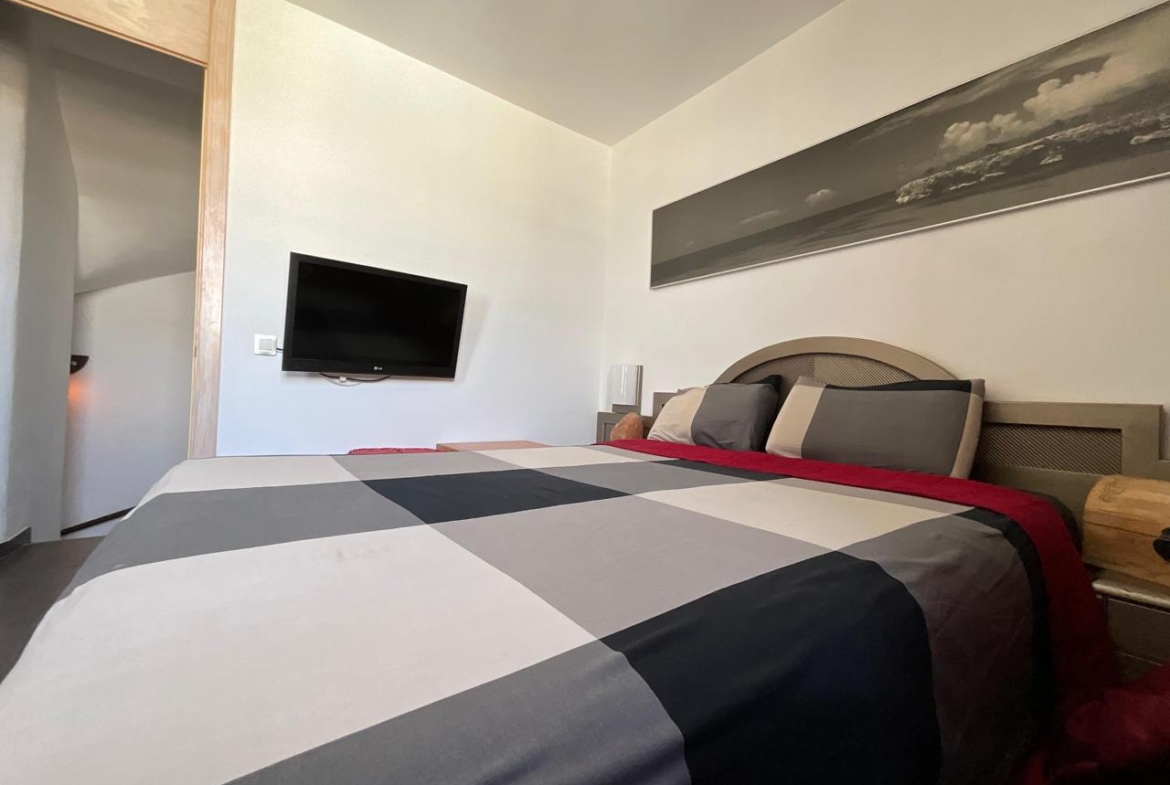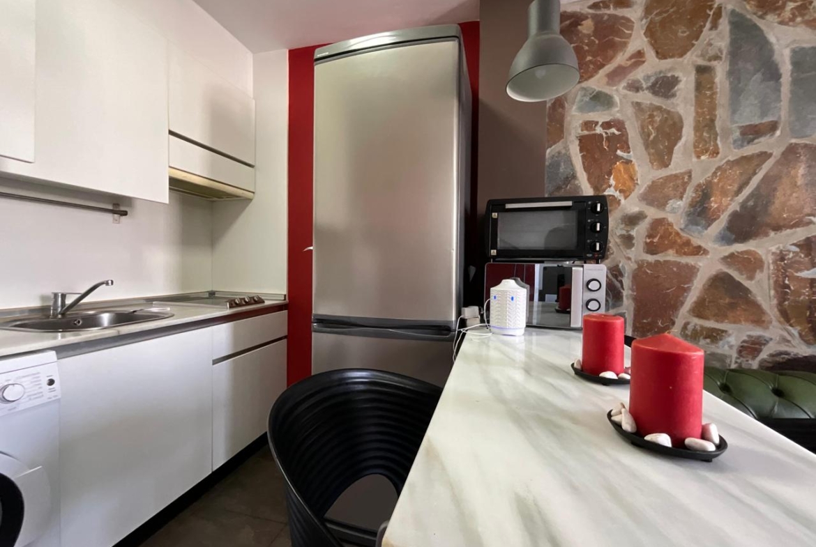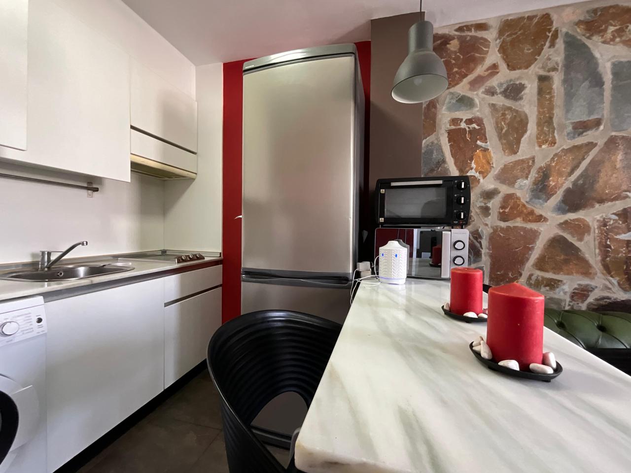 En la planta baja se encuentra la zona de día, diseñada para ofrecer funcionalidad y confort. El salón se presenta como un espacio acogedor, equipado con dos sofás y zona de televisión, ideal tanto para el descanso como para el entretenimiento. La cocina, integrada en el mismo ambiente, es compacta pero muy bien aprovechada, equipada con todos los electrodomésticos necesarios y pensada para cubrir las necesidades del día a día con comodidad.