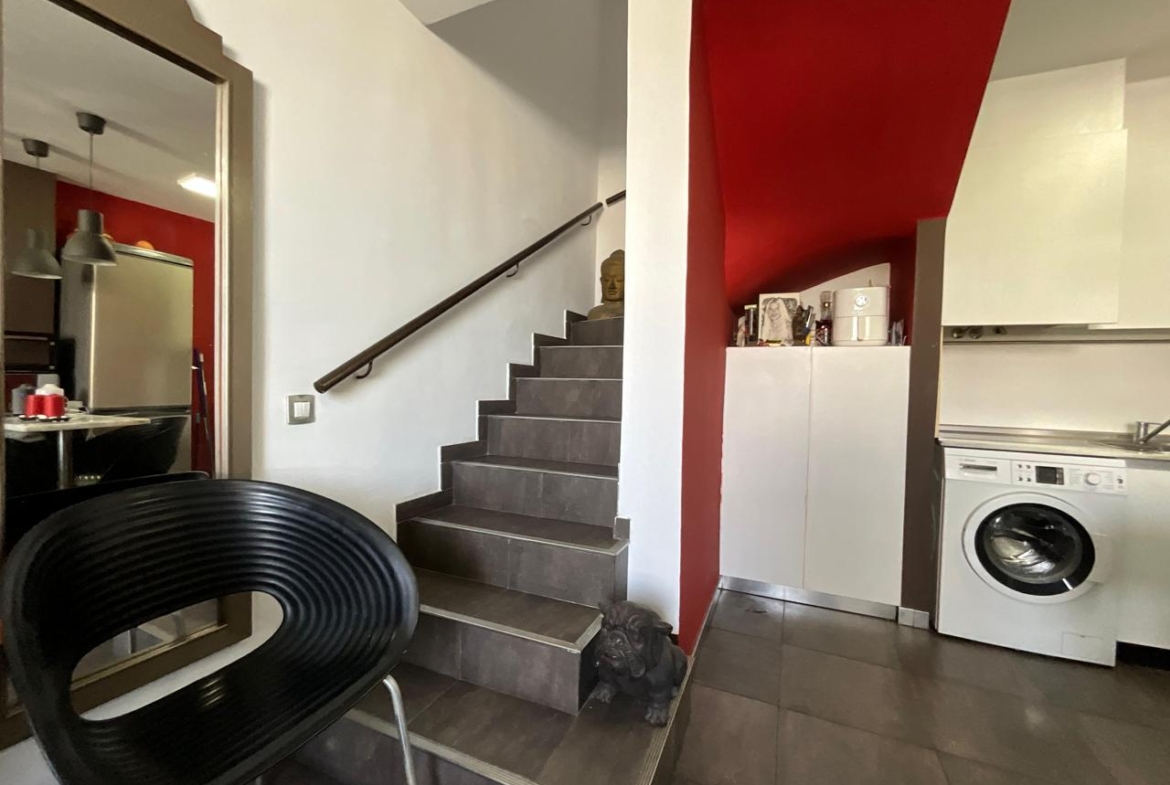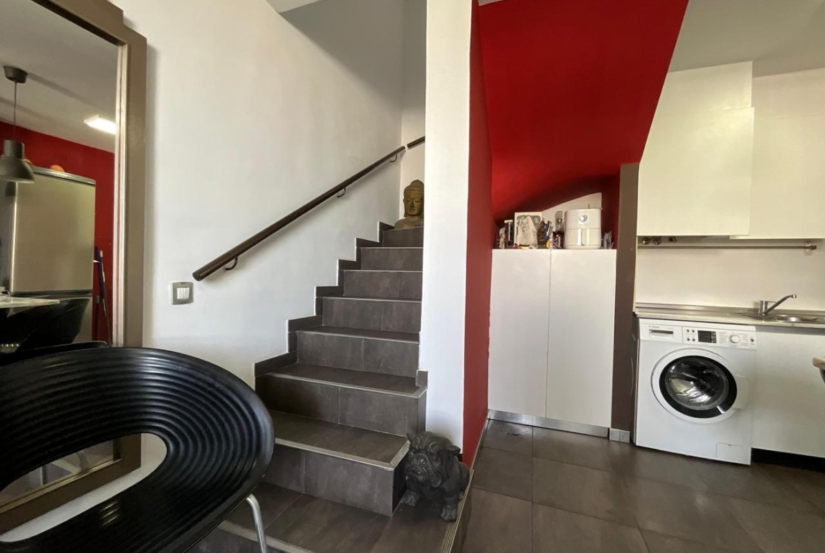 Continuando por la vivienda, una segunda escalera conduce a uno de los espacios más atractivos de la propiedad: una terraza privativa en la parte superior. Este espacio ha sido concebido como una zona de relax, equipada con tumbonas, ideal para desconectar, tomar el sol o disfrutar de momentos al aire libre. Desde aquí se pueden apreciar agradables vistas al mar, convirtiéndose en un lugar perfecto para contemplar los atardeceres en un entorno tranquilo y privilegiado.