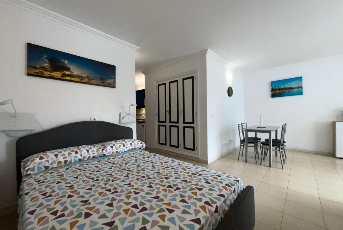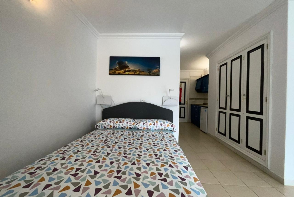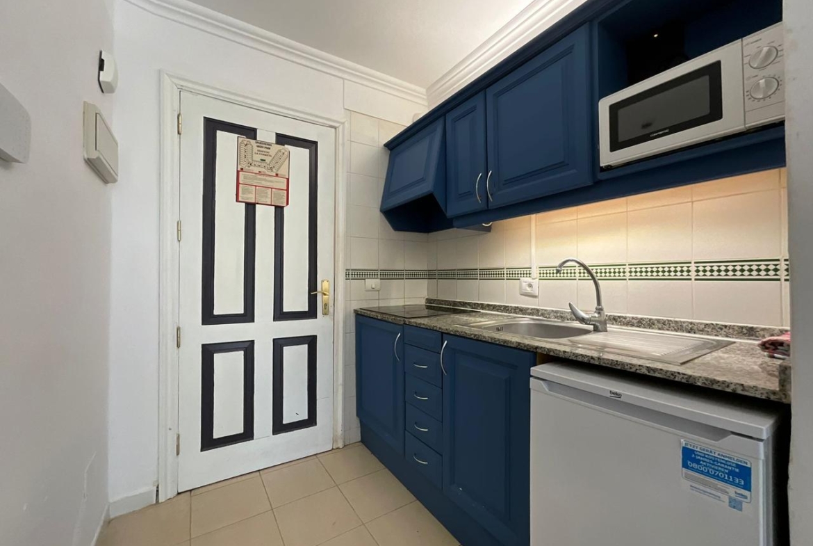 Se ofrece acogedor estudio situado en la primera planta de un edificio dentro de un complejo residencial bien cuidado, que dispone de tres piscinas comunitarias, amplias zonas ajardinadas y plaza de aparcamiento comunitaria sin asignar para propietarios.
