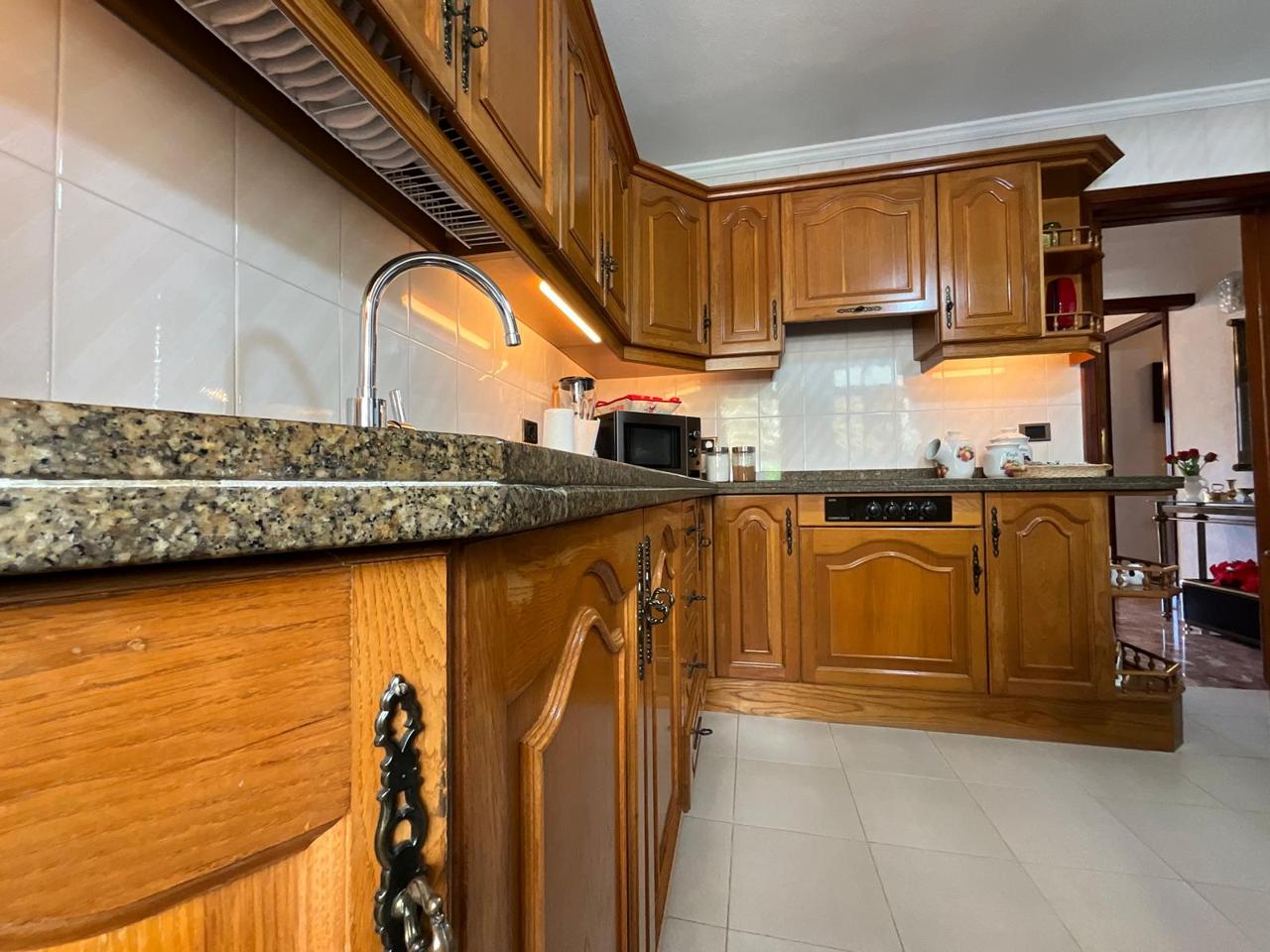 Desde la entrada, el recibidor articula la vivienda con una distribución fluida que conecta todas las estancias. A la derecha, la cocina combina mobiliario en madera con electrodomésticos de alta calidad, creando un ambiente cálido y funcional. Anexa a esta zona, una práctica estancia destinada a lavadero o trastero aporta ese espacio extra que marca la diferencia en el día a día.