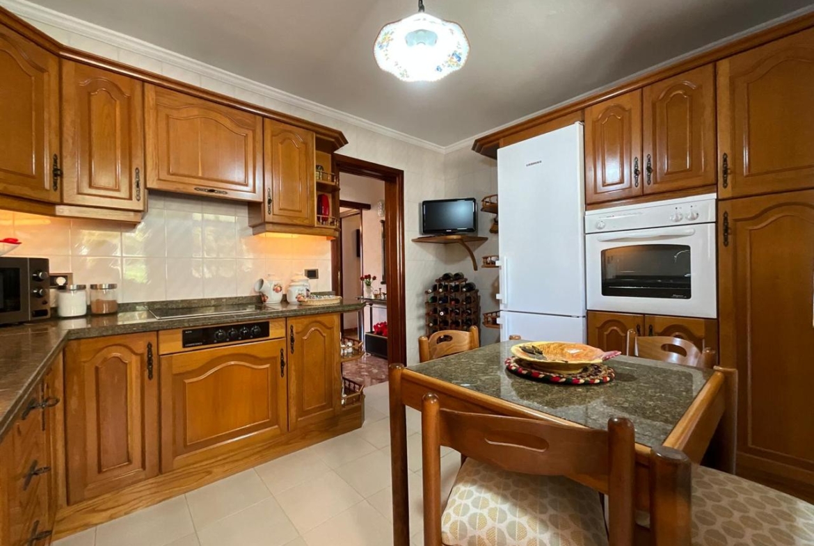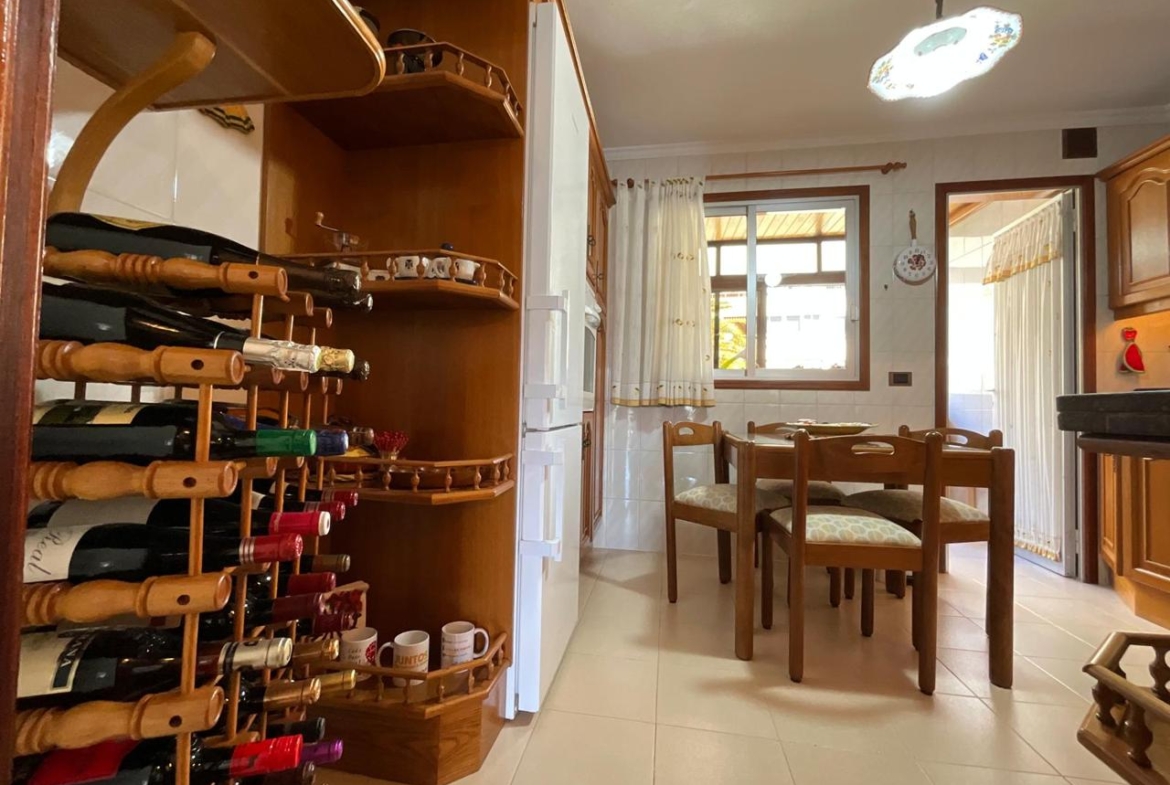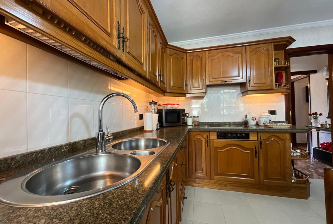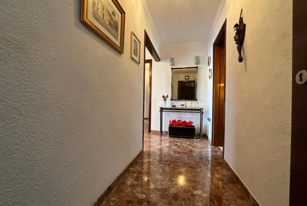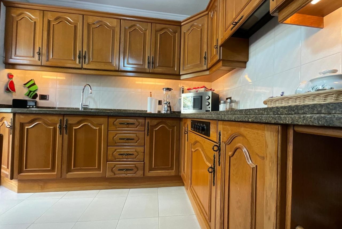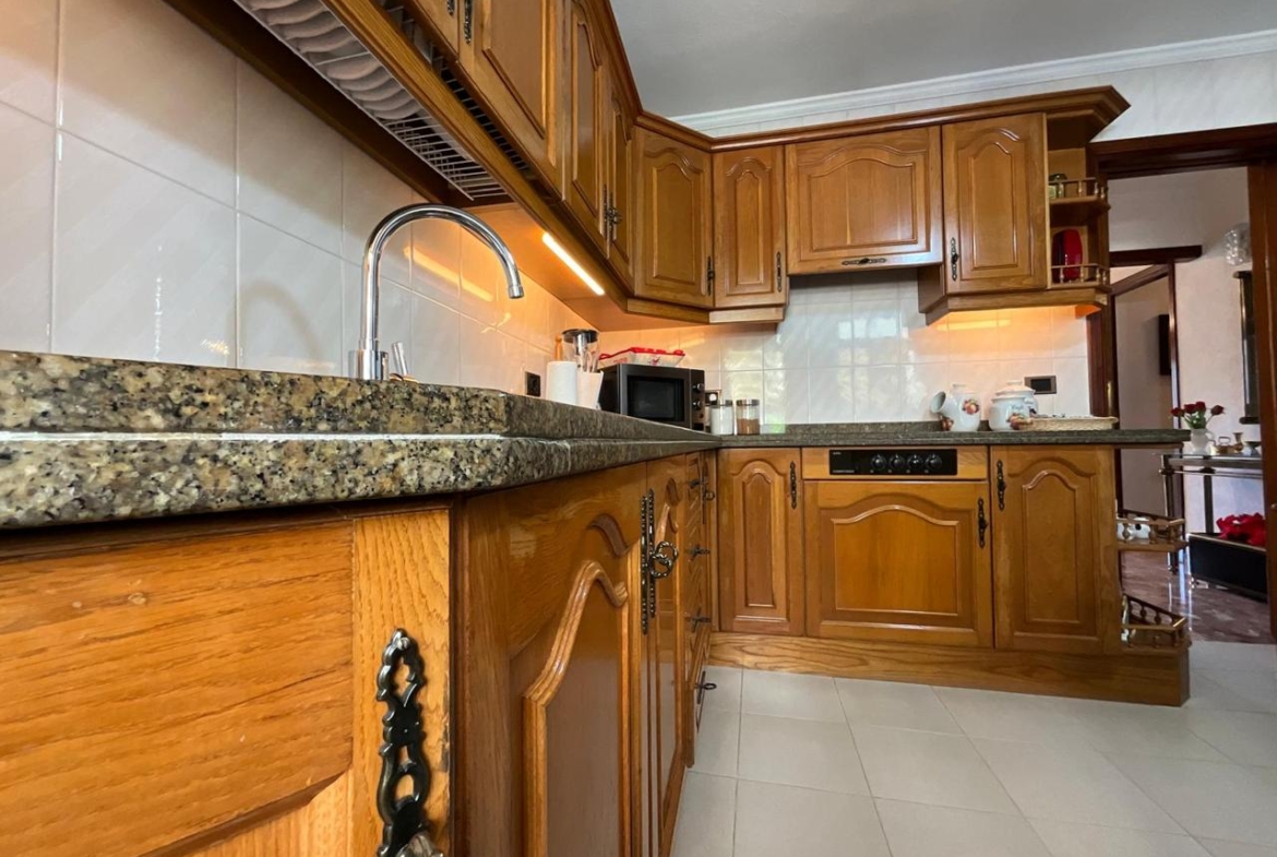 Desde la entrada, el recibidor articula la vivienda con una distribución fluida que conecta todas las estancias. A la derecha, la cocina combina mobiliario en madera con electrodomésticos de alta calidad, creando un ambiente cálido y funcional. Anexa a esta zona, una práctica estancia destinada a lavadero o trastero aporta ese espacio extra que marca la diferencia en el día a día.