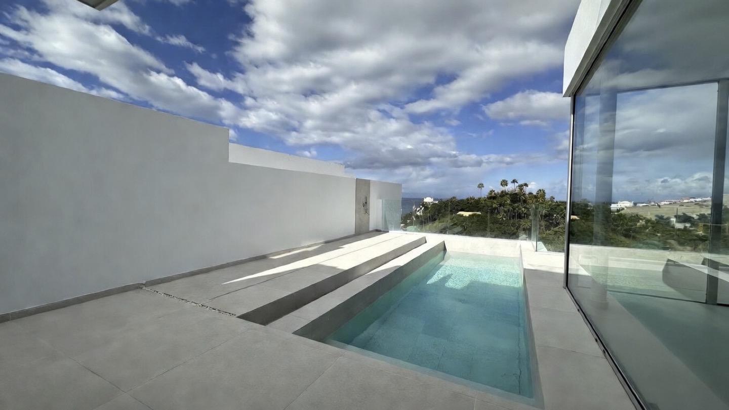 Las villas disponen de cuatro dormitorios de generosas dimensiones, dos de ellos con baño en suite y acceso a terrazas privadas, pensadas para garantizar confort y privacidad. Los espacios exteriores constituyen uno de los principales puntos fuertes de la propiedad: una amplia terraza panorámica se abre a una piscina privada tipo infinity de 7,5 x 3 metros, desde la cual se disfruta de una vista abierta al océano y de los espectaculares atardeceres de la costa sur de Tenerife. Completan el área exterior una zona chill-out y un espacio de barbacoa con preinstalación para fire pit, ideales para disfrutar del clima de la isla durante todo el año.