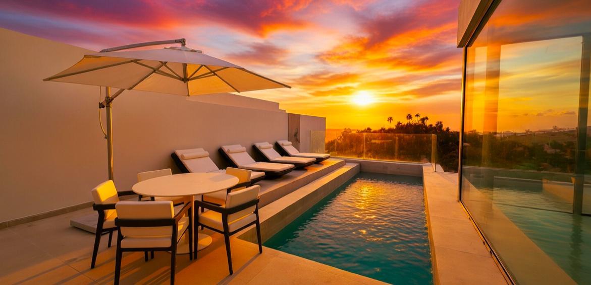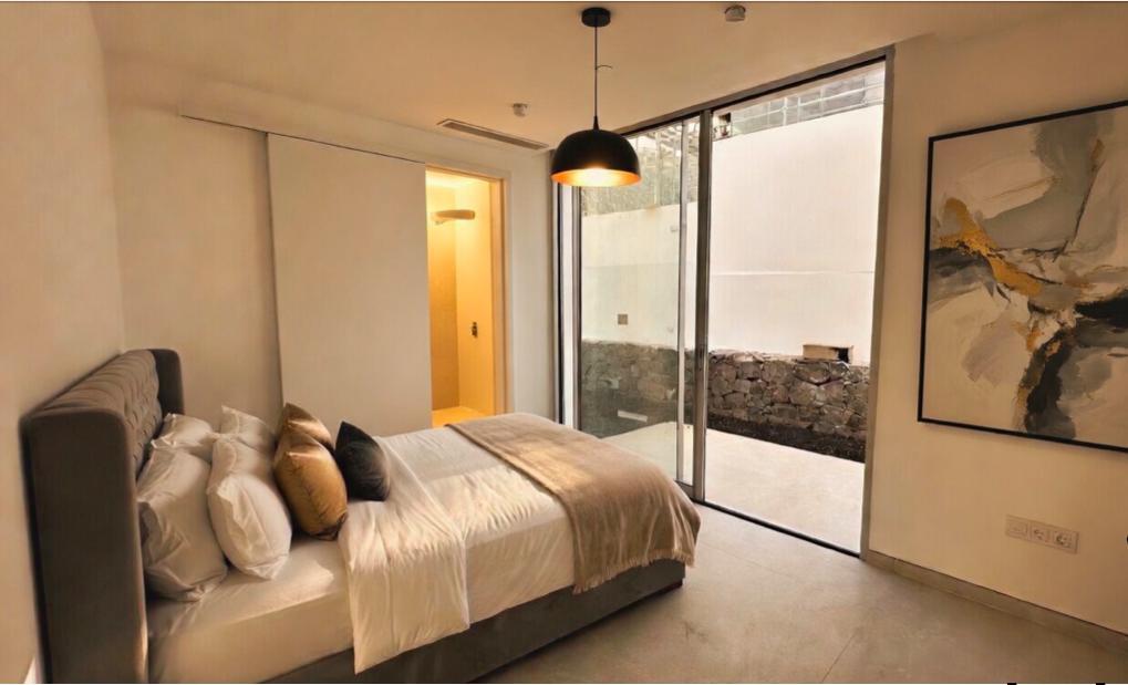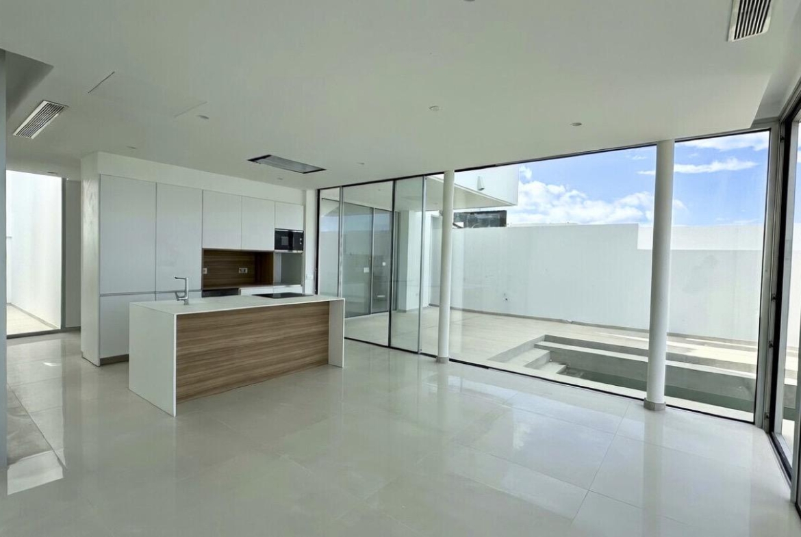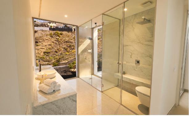 Las villas disponen de cuatro dormitorios de generosas dimensiones, dos de ellos con baño en suite y acceso a terrazas privadas, pensadas para garantizar confort y privacidad. Los espacios exteriores constituyen uno de los principales puntos fuertes de la propiedad: una amplia terraza panorámica se abre a una piscina privada tipo infinity de 7,5 x 3 metros, desde la cual se disfruta de una vista abierta al océano y de los espectaculares atardeceres de la costa sur de Tenerife. Completan el área exterior una zona chill-out y un espacio de barbacoa con preinstalación para fire pit, ideales para disfrutar del clima de la isla durante todo el año.